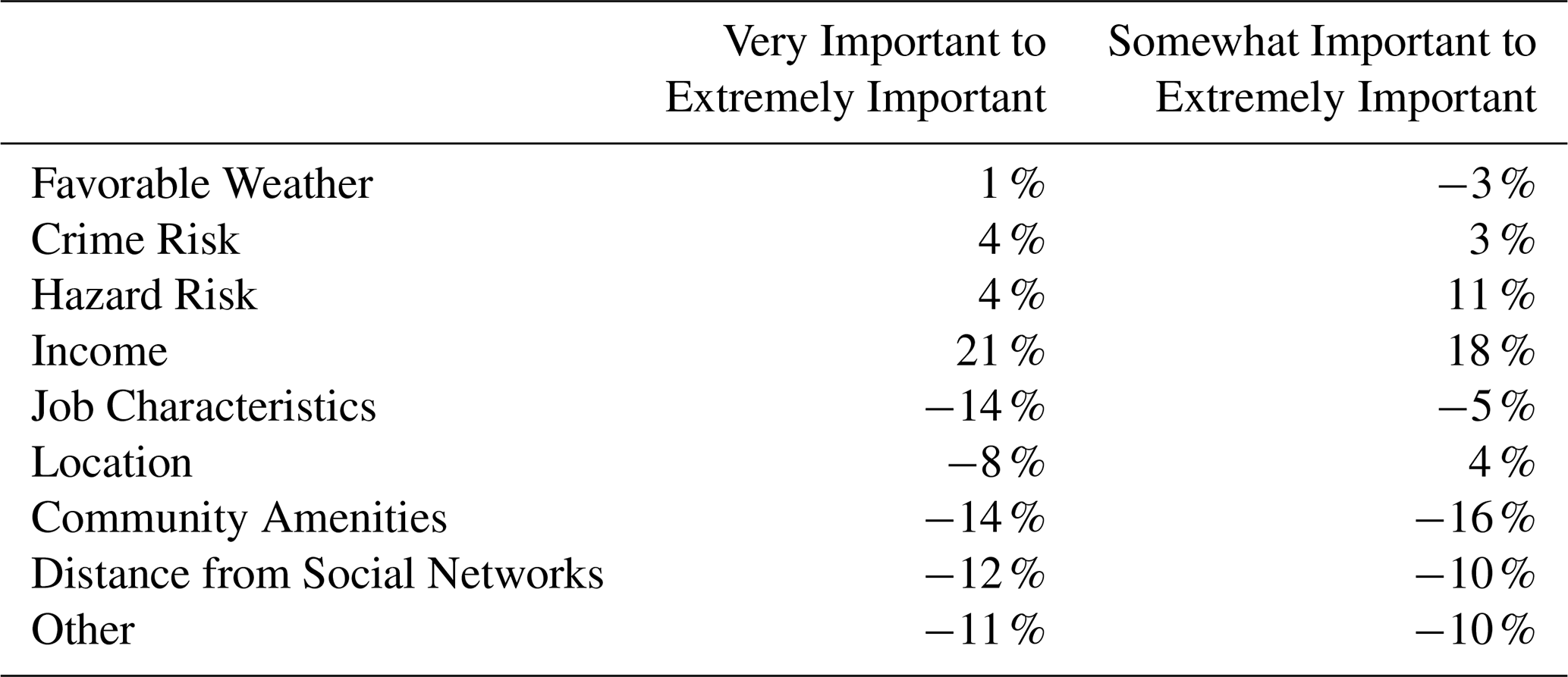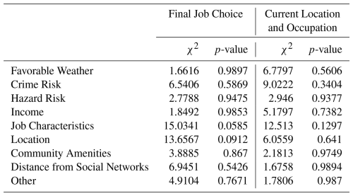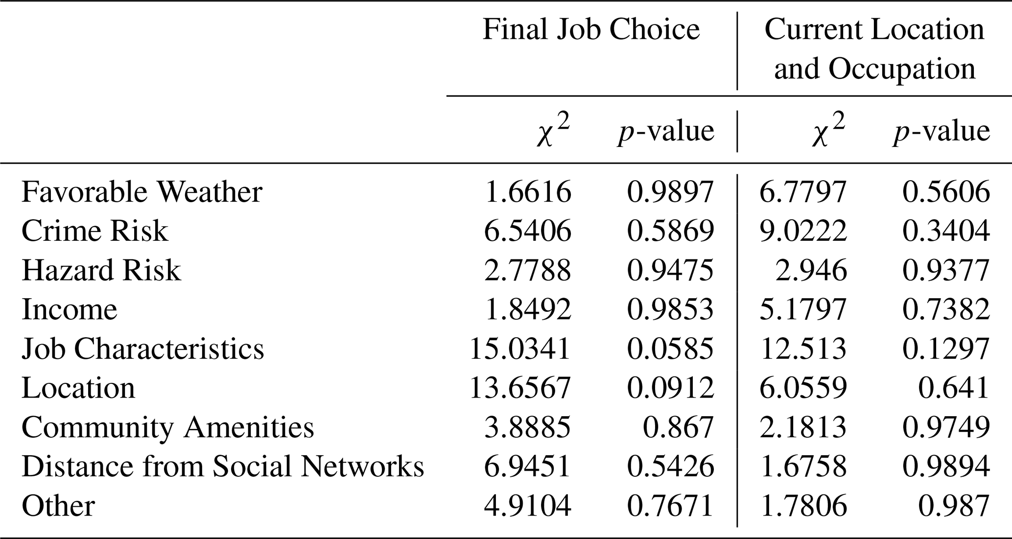 Table 5Change in importance of factors in between choice of final job and choice of current location and occupation.