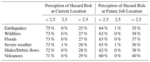 Hazard risk perception was calculated for the current location and job location following Eqs. (1) and (2) for each hazard: